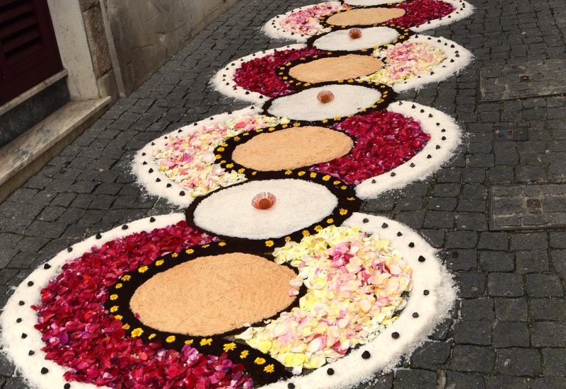 Em hora a indicar, saída para Monção, umas das capitais do Alvarinho, para visita as ruas e largos do centro histórico enfeitadas de tapetes floridos, confecionados na noite de sábado, para que no domingo, as ruas acordem enfeitadas com pétalas, funcho, borras de café e serrim de várias cores, com criativos desenhos geométricos e diversos motivos religiosos, tempo livre para admirar a beleza floral de uma antiga tradição em honra da Nossa Senhora da Rosa.